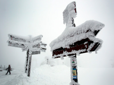 Seorang pendaki gunung berjalan di dekat papan penunjuk arah di Winterberg, Jerman, Jumat, 10 Desember 2010. (Foto: AP Photo/ Frank Augstein)